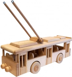 A trolibusz minőségi, kemény bükkfából készült, sima felülettel és lekerekített élekkel a biztonságos játékért.