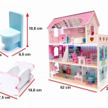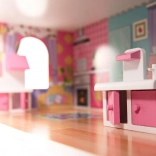 A magassága lehetővé teszi, hogy még a nagyobb gyerekek is kényelmes testhelyzetben játszhassanak. A babaház emellett nagyon stabil – játék közben nem borul a gyermekre. A ház LED szalagos világítással rendelkezik, amelyet gyermeke preferenciái szerint helyezhet el a villában.