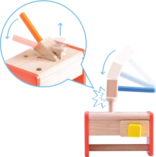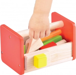 A készlet tartós tömör fából és fa-műanyagból készült, ami hosszú élettartamot és biztonságos játékot garantál. A természetes megjelenés és az élénk színek vonzó kombinációja minden gyermek figyelmét felkelti. A gyerekek megtanulják rendeltetés szerint szortírozni az eszközöket, és a kompakt kialakításnak köszönhetően helyet is spórolnak.
