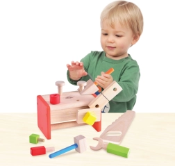Támogasd gyermeked manuális készségeinek fejlődését egy masszív fából készült kreatív szerszámkészlettel, amely a praktikusságot vonzó színekkel ötvözi.