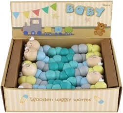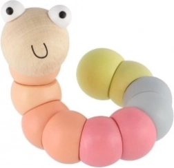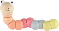 Ez a fa kukac/hernyó sima, színes szegmensekből áll, amelyek egymáshoz kapcsolódva lehetővé teszik a könnyű hajlítást különböző formákba. A kellemes pasztell árnyalatok és a mosolygós arc miatt a gyerekek azonnal megszeretik. Ideális a játékos időtöltéshez és a finommotorika, valamint a kreativitás erőfeszítés nélküli fejlesztéséhez.