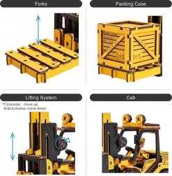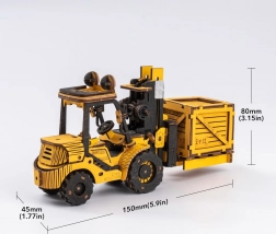 Ez a kezelőgép-építőkészlet az erős gépek és az okos mechanizmusok világába vezet. A fa 3D targonca kirakó 139 lézerrel kivágott elemből áll, amelyekből részletgazdag, mozgó részekkel rendelkező modell építhető. Az építés intuitív, és a mellékelt útmutatóval kezdők számára is könnyen megoldható.