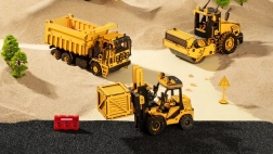 Egészítse ki a targoncát további fa építőgép-modellekkel, és hozza létre saját működő gépparkját.