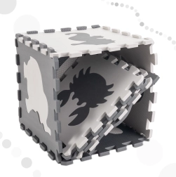 Az EVA anyag rugalmas, ütéscsillapító, és rendkívül könnyen tisztítható – elég nedves ruhával áttörölni. Az elemek pontosan illeszkednek, így az összeszerelés és a szétszedés pillanatok műve. A stílusos kivitel ráadásul dekoratív elemként is szolgál a gyerekszobában.