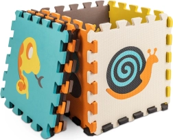 Ez a nagy habszőnyeg 9 darabból áll, egyenként 30 × 30 × 1 cm méretben, amelyek könnyen illeszkednek egymáshoz. A kontrasztos színek és a bájos állatmotívumok felkeltik a gyerekek érdeklődését, és ösztönzik a látást és a tapintást. A kivehető középső elemek egyszerű formaberakóként működnek – a gyerekek megtanulják felismerni a formákat és a megfelelő helyre illeszteni őket.
