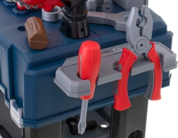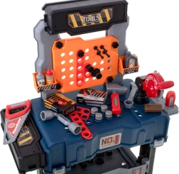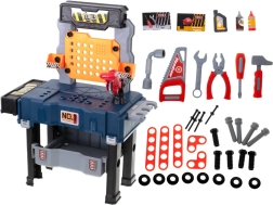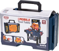 Ez a hordozható bőrönd könnyen gyerek munkapaddá alakítható, sok tárolóhellyel – az alsó ládától a nagyobb darabok számára, a szerszámoknak szánt perforált falon át, egészen a két polcig és a tágas munkalapig. A gyerekek megismerkednek az alap barkács-ismeretekkel, és biztonságosan kipróbálhatnak olyan tevékenységeket, mint a „csavarozás”, „kalapálás” vagy „fűrészelés”.