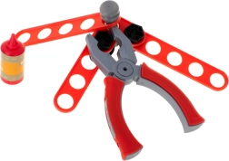 A csomagban csavarok, anyák, szegek, fűrész, kulcsok, csavarhúzó, kalapács, fogó és összekötő elemek találhatók – minden a valósághű és kreatív játékhoz.