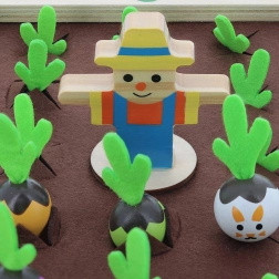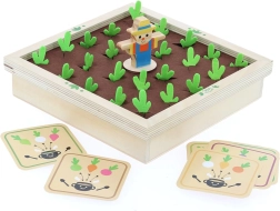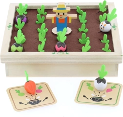 Fedezzétek fel a kiskert varázsát a családi asztalnál. Ez a gyönyörű fa játék filc elemekkel színes zöldségfigurákat és receptkártyákat kínál, amelyek segítségével a gyerekek megtanulják felismerni az alakokat, színeket és a logikai összefüggéseket. Játsszatok klasszikus memóriát, vagy főzzetek együtt levest a receptek szerint – mindig egy kis izgalommal, vajon felbukkan-e a csintalan nyuszi.
