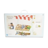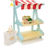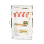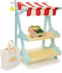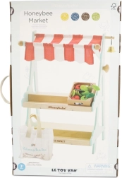 Le Toy Van Méhecskés Árusító Stand egy népszerű termék a Le Toy Van márkától, melynek hírnevét díjnyertes dizájnja és minősége biztosítja. Ez az árusító stand piros-fehér baldachinnal, csengővel és fa ládákkal van felszerelve. Inspirálja a gyerekeket a szerepjátékoknak köszönhetően, amelyek fejlesztik a szociális készségeiket és kreativitásukat.