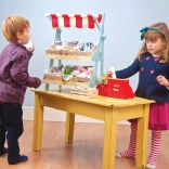 Minden részlete a standnak, a baldachintól a tárolóhelyekig, gondosan lett megtervezve a maximális tartósság és esztétika érdekében. Játékok céllal minden Le Toy Van termék hosszú távú használatra készült, nem mérgező festékekkel festett és fenntartható anyagokból készített. Ez a játék segíti a kognitív készségek és türelem fejlesztését a gyerekeknél.