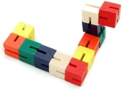 Színes fa kígyó alakú kirakó számtalan lehetőséget kínál, hogy a gyermekek felfedezhessék kreativitásukat. Az egyes szegmensek forgatásával és átfordításával fejlesztik ügyességüket és finommotoros képességeiket. A játék úti alkalmas, zsebnagyságának köszönhetően a gyerekek mindig kéznél tarthatják. A fa építőkockák rugalmas gumival vannak összekötve, amely garantálja tartósságát és biztonságát.
