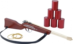 • Teljes készlet: fa puska, 20 gumi, 6 mini konzervdoboz