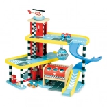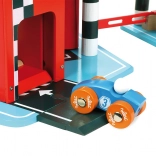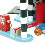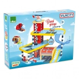 A nagy VILAC Vilacity fa garázs tökéletes városi közlekedési központ minden kis versenyző számára. Az átgondolt mechanikus részleteknek, mint a működő lift, a sorompó és az autómosó köszönhetően a gyerekek fejlesztik a finommotorikát, a fantáziát és a logikus gondolkodást. A készlet két kisautót és egy helikoptert tartalmaz, így azonnal kezdődhet a játék az összeszerelés után.
