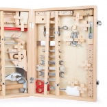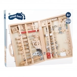 A small foot Deluxe szerszámos bőröndje praktikus és masszív, ideális azoknak a gyerekeknek, akik szívesen fedezik fel a javítás és alkotás világát. Minden eszköznek megvan a kijelölt pozíciója, és rögzített, hogy szállítás közben is a helyén maradjon. A minőségi kivitel fa, fém és műanyag felhasználásával hosszú élettartamot és hiteles szerszámhasználati élményt biztosít.