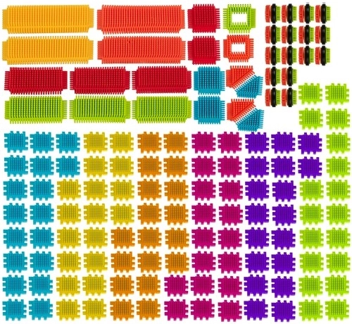 Ez a színes, sünis struktúrájú építőkészlet lehetővé teszi a gyerekeknek végtelen számú alkotás létrehozását – házaktól és járművektől kezdve a fantáziavárakig. Az elemek lekerekített végei biztonságos játékot biztosítanak 3 éves kortól, és könnyen összekapcsolhatók, valamint szétbonthatók.