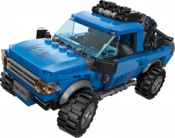 A nagy kerekek és a terepjárók részletgazdag kidolgozása garantálják a fantáziadús száguldást. Az ABS műanyag kockák erős illeszkedése mindent egyben tart.