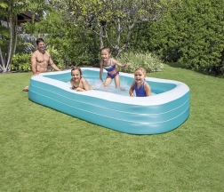 Felfújható medence INTEX Swim Center ideális nyári szórakozáshoz a családdal vagy barátokkal. Gyerekeknek és felnőtteknek is frissítést és kikapcsolódást nyújt nagy és kényelmes méreteivel.