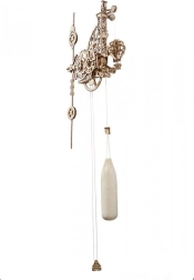 Az óra széles finomhangolási lehetőségeket kínál – az ingák finom kiegyensúlyozása, a ballon sebességének szabályozása és az egyensúlyi helyzet pontos beállítása. A felhúzást a vászonzsákban lévő fő súly biztosítja, amelyet homokkal vagy sóval lehet megtölteni, az idő beállítása mechanikus retesz segítségével történik. Az ipari forradalom által inspirált dizájn örömet okoz a műszaki rajongóknak, a modellezőknek és a steampunk esztétika kedvelőinek.