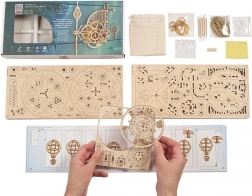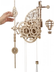 A Ugears Aero egy mechanikus falióra minőségi rétegelt lemezből, amelyet ragasztó nélkül szerelhet össze. A feltárt óraszerkezet ingával és súllyal lenyűgöző betekintést nyújt a precíz mérnöki megoldások világába. Az időt két, az óramutató járásával ellentétesen forgó számlapról olvashatja le, miközben a dekoratív hőlégballon rendszeresen emelkedik, és minden egész órában süllyedéssel jelez.