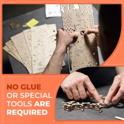 Az összeszerelés precíz és élvezetes a 400 pontosan kivágott alkatrésznek és a részletes útmutatónak köszönhetően. A modell modulárisan összekapcsolható – kapcsoljon össze kettő-négy pályát, és alkosson szinkronizált mechanikus rendszert, tele dinamikával és baráti versengéssel.