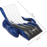Az INTEX felfújható fotel ötvözi egy lounge nyugágy kényelmét és egy vízi fotel stabilitását. A magas háttámla, a formázott kartámaszok és a szegmentált kamrák kellemes tartást adnak a hátnak és a karoknak, míg a két pohártartó gondoskodik a kényelemről pihenés közben vízen és szárazon egyaránt.