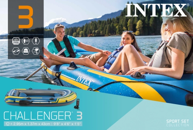 Az INTEX Challenger 3 felfújható csónak ideális választás nyugodt tóparti kirándulásokhoz, kényelmes folyóvízi evezésekhez és könnyű horgászathoz. Alacsony tömegének köszönhetően könnyen szállítható, és praktikusan elfér az autó csomagtartójában. A 0,50 mm vastag, masszív PVC anyag, a három különálló légkamra és a Boston szelepek együtt biztosítják a biztonságot, a stabilitást, valamint az egyszerű felfújást és leeresztést.