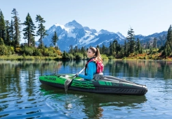 Átgondolt részletei fokozzák a kényelmet és a praktikusságot: az állítható, felfújható háttámlás ülés támogatja a helyes testtartást, az orrnál lévő háló biztonságosan tartja a személyes tárgyakat, a körbefutó kötél pedig megkönnyíti a part menti kezelést. A gyors felfújást és leeresztést szolgáló szelepek időt takarítanak meg, így gyorsan vízre szállhat, a túra végén pedig kényelmesen elcsomagolhat.