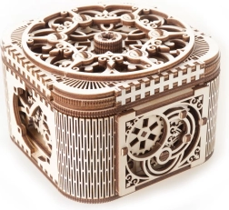 Az elegáns, fából készült UGEARS ékszerdoboz egy mechanikus 3D puzzle, amely ragasztó nélkül állítható össze, és összeszerelés után valóban működik. Egyedi nyitásmechanizmust, minőségi kidolgozást és simán futó mechanikát kínál az átgondolt fogaskerekeknek köszönhetően. Ideális a technika és a design szerelmeseinek, fejleszti a finommotorikát és a fantáziát, és egyedi tárolóhelyet biztosít az értékeknek.