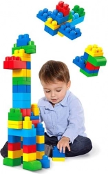 A nagy elemek jól kézbe illenek, stabilan összeilleszthetők, és ugyanilyen könnyen szétválaszthatók. Ideális a koordináció és a finommotorika gyakorlásához.