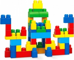 A MEGA BLOKS FIRST BUILDERS nagy kockatáska biztonságos és szórakoztató építést kínál 1 éves kortól. 60 extra nagy elem klasszikus színekben, úgy tervezve, hogy könnyen kézben tarthatók legyenek, stabilan kapcsolódjanak, és ugyanolyan könnyen szét is szedhetők.