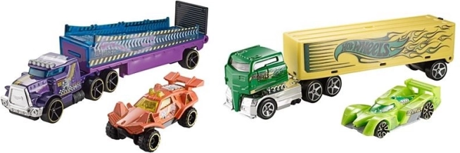Fedezd fel a szuper Hot Wheels® teherautókat, amelyek a gyerekeket kreatív játékra ösztönzik. Minden készlet tartalmaz egy sportautót, amely rengeteg akciódús szórakozást garantál. Választhatsz sokféle modell közül, mint például a piros szegélyes, krómozott csövekkel ellátott fekete teherautó, amelyhez egy kék versenyautó jár, vagy a koponyás ezüst teherautó feltűnő zöld lángokkal. Minden modell izgalmas játékra tervezték, és segít a gyerekeknek fejleszteni kreativitásukat.