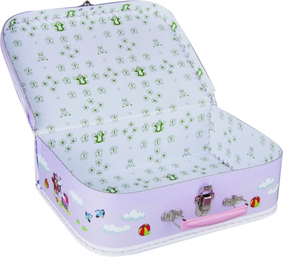 Ez a bájos bőrönd a népszerű Kisvakond és babakocsi motívummal lila háttérrel minden gyermeket elbűvöl. Könnyű és könnyen hordozható, ami tökéletes utazáshoz és otthon.