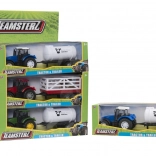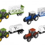 Válassz traktort zöld, kék vagy piros színben, és csatlakoztasd a kedved szerint a pótkocsit – univerzális platóst vagy stílusos tejtartályost (elérhetőségtől függően).
