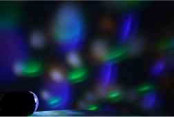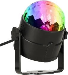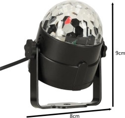 A diszkógömb 3x1W LED-et használ, amely széles színskálájú effekteket hoz létre.