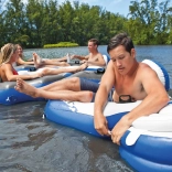 Előre tesztelt, masszív vinilből készült. Megközelítő méret: 1,30 m × 1,26 m. Nem játék, rekreációs sporthoz készült. Erős fogantyúk. Egyszerűen csatlakoztatható más River Run termékekhez. Két légkamra, pohártartó. Javítófolt mellékelve.
