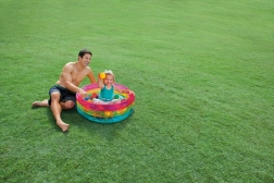 A medence használható száraz játszómedenceként labdákkal, vagy kevés vízzel megtöltve nyári felfrissüléshez. A könnyű, helytakarékos PVC kivitel gyors felfújást, áthelyezést és tárolást tesz lehetővé.