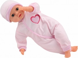 HAMIRO baba 40 cm, merev testtel, fehér-rózsaszín overálban és rózsaszín sapkában