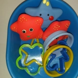 Praktikus gyerek fürdőkészlet a legkisebbeknek, amely tartalmaz egy fürdetőkádat, 3 gumicsillagot és kiszúrókat a vidám fürdéshez. Minőségi műanyagból készült, biztonságos kivitel, Csehországban készült.