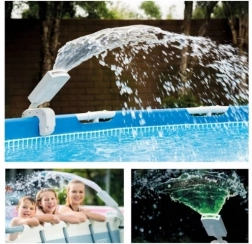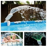 Varázslatos vízi látvány otthon – az INTEX medencés szökőkút LED világítással színes vízeffektet, gyors, szerszám nélküli szerelést és biztonságos, áram nélküli működést kínál a beépített hidrogenerátornak köszönhetően. Univerzális rögzítés a Prism Frame és Ultra Frame sorozatokhoz, és működik a szokásos szűrőszivattyúkkal.