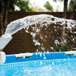 A szerelés egy percen belül elvégezhető: a szökőkutat egyszerűen a medence falára rögzíti fúrás és szerszámok nélkül. Az univerzális rögzítés és a mellékelt adapter lehetővé teszi a könnyű csatlakoztatást a 32/38 mm-es tömlőkhöz és a 3 785–12 112 l/óra átfolyású szűrésekhez. A termék megfelel az európai szabványoknak a biztonság terén.