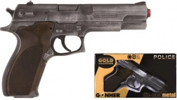 Stílusos rendőrségi pisztoly a Gold Edition kiadásból elegáns, ezüst színű fém kivitelben, 8 lövetű kapszulához. Remek választás rendőrös szerepjátékhoz és gyűjtőknek is, akik értékelik a minőségi kidolgozást és az autentikus megjelenést.
