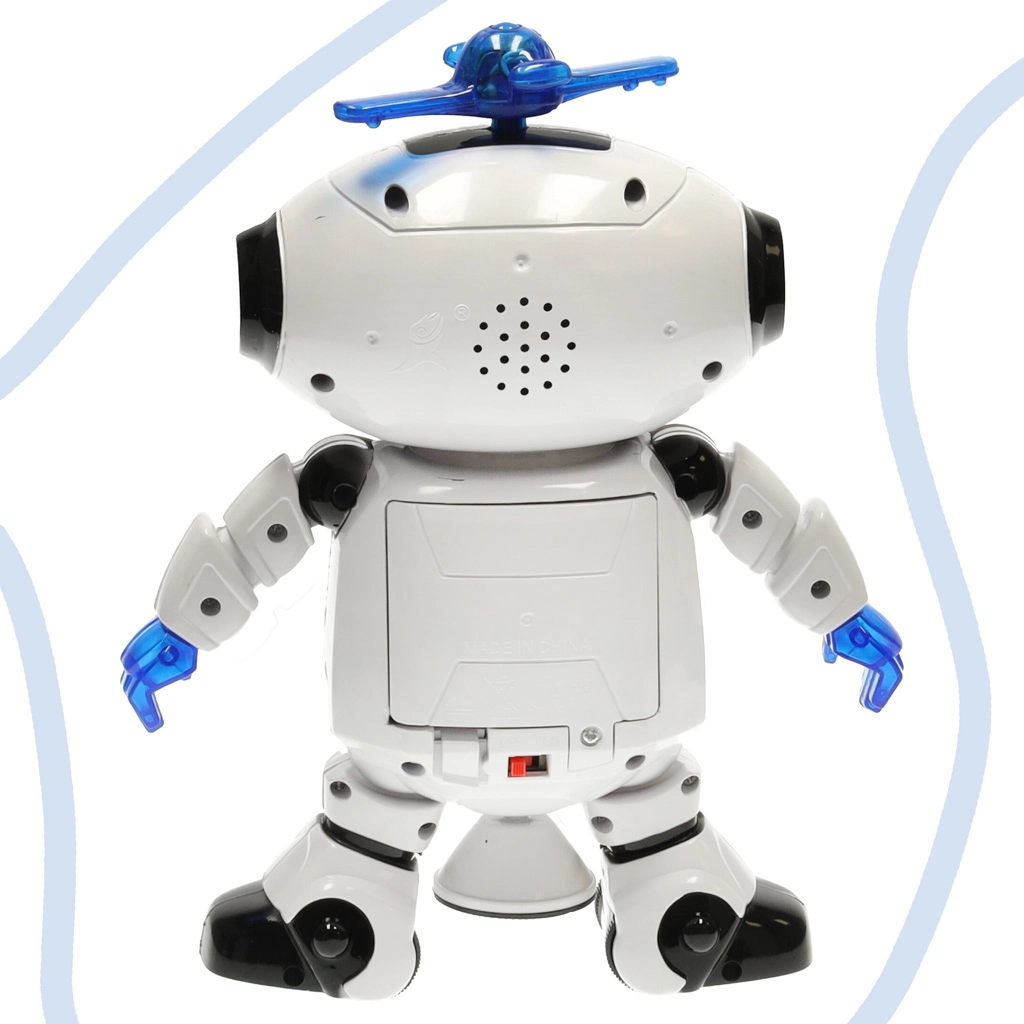 Az interaktív, táncoló ANDROID 360 robot tökéletes társ a kis felfedezőknek. Fény- és hanghatásainak köszönhetően életre kelti bármely gyerekszobát, és támogatja a mozgást és a fantáziát. A robot képes 360°-ban forogni, járni, valamint karjait és lábait mozgatni.