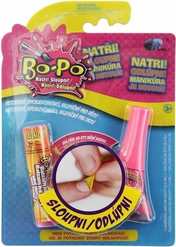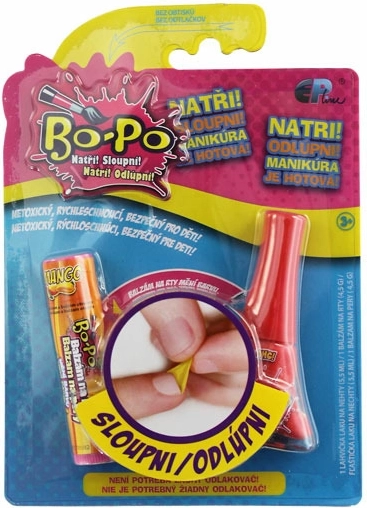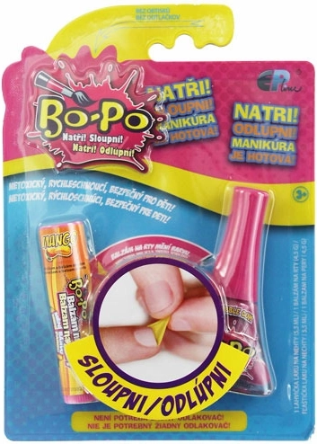A Bo-Po szett megkönnyíti a körömápolást lemosó nélkül. Egyszerűen húzd le a lakkot és próbálj ki új színeket.