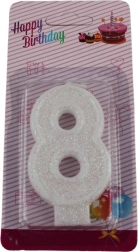 Elegáns születésnapi gyertya 9-es számmal és finom csillogással – tökéletes választás a kívánság elfújásának különleges pillanatához. Tiszta fehér kivitelének és csillámának köszönhetően sokféle tortastílushoz és dekorációhoz passzol.