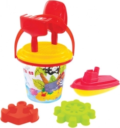 Ez a sokoldalú homokozó készlet órákon át tartó kreatív szórakozást nyújt a strandon és a homokozóban is. A 3,2 literes tágas vödör, a praktikus eszközök és a vízimalom vagy csónak fejlesztik a fantáziát, a finommotorikát és az érzékelést. A minőségi IML nyomat kopásálló és nem válik le.