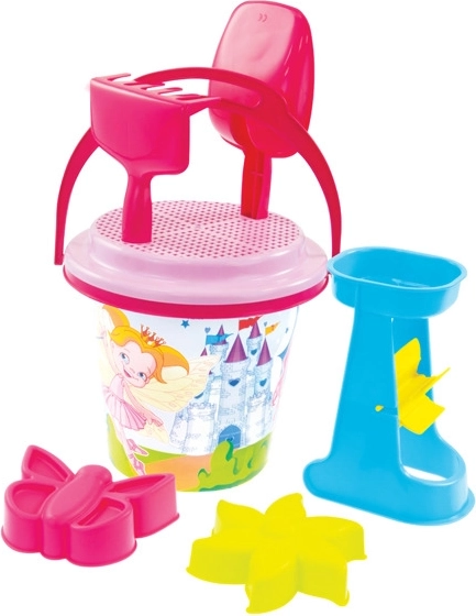 A készlet az EU-ban, erős és biztonságos műanyagból készült, amely bírja a vizes és homokos játékot. A könnyű kialakítás és a vödör füle megkönnyíti a hordozást, a különféle gyerek motívumok (tündérek, dinoszauruszok, kalózok, hercegnők, halacskák) pedig minden kis várépítőt megörvendeztetnek.