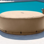 Praktikus fedő 4 személyes, kerek pezsgőfürdőkhöz, amely egész évben kiváló állapotban tartja a pezsgőfürdőt. Minimalizálja a levelek és por lerakódását, segít stabil hőmérsékleten tartani a vizet és energiát takarít meg. A védőszíj biztonsági csattal erős rögzítést biztosít szeles időben is.