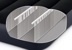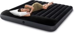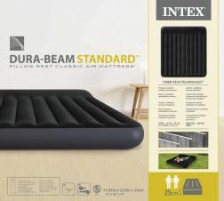 Az INTEX felfújható ágy 183 × 203 × 25 cm-es méretben stabilitást és kényelmet ötvöz vendégek számára otthon és utazáskor is. A Fiber-Tech belső szerkezet ezernyi erős poliészter szálból egyenletes testtámaszt nyújt, míg a flokkolt (velúr) felület puha tapintású és segít megakadályozni a lepedő csúszkálását.