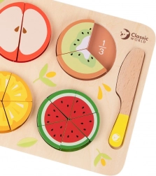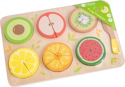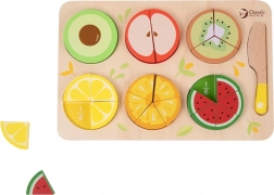 A fa gyümölcsszeletelő készlet ideális a kisgyermekek számára, akik szeretnek szakácsosat játszani. Ez az oktatási készlet 23 különböző elemet tartalmaz, köztük egy deszkát, egy kést és felosztott gyümölcsöket, amelyek végtelen kreatív játék és képzeletbeli jelenetek lehetőségét kínálják.