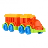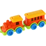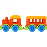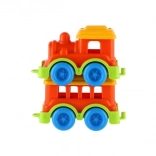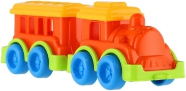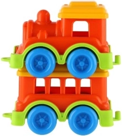 Ez a műanyag vonat élénk színekben lett tervezve, amelyek vonzzák a gyerekek figyelmét és támogatják a vizuális ingereket.